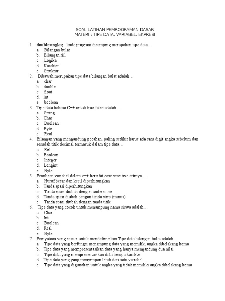 SOAL LATIHAN PEMROGRAMAN DASAR