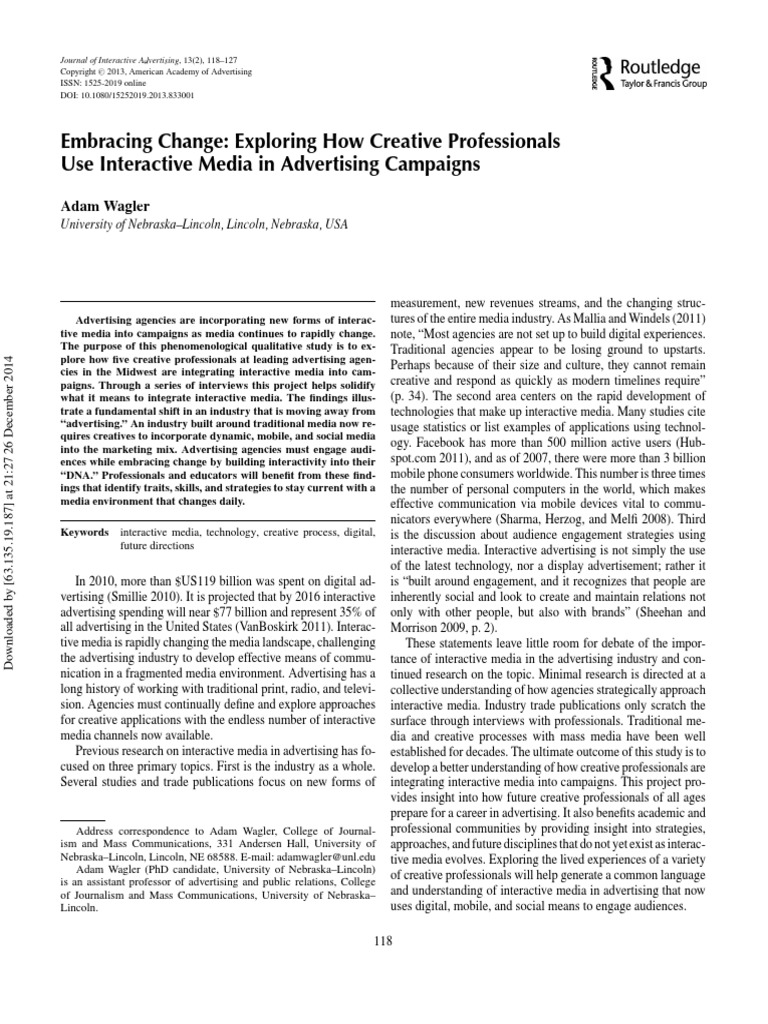 into the marketing mix. Advertising agencies must engage audiences while embracing change by building interactivity into their