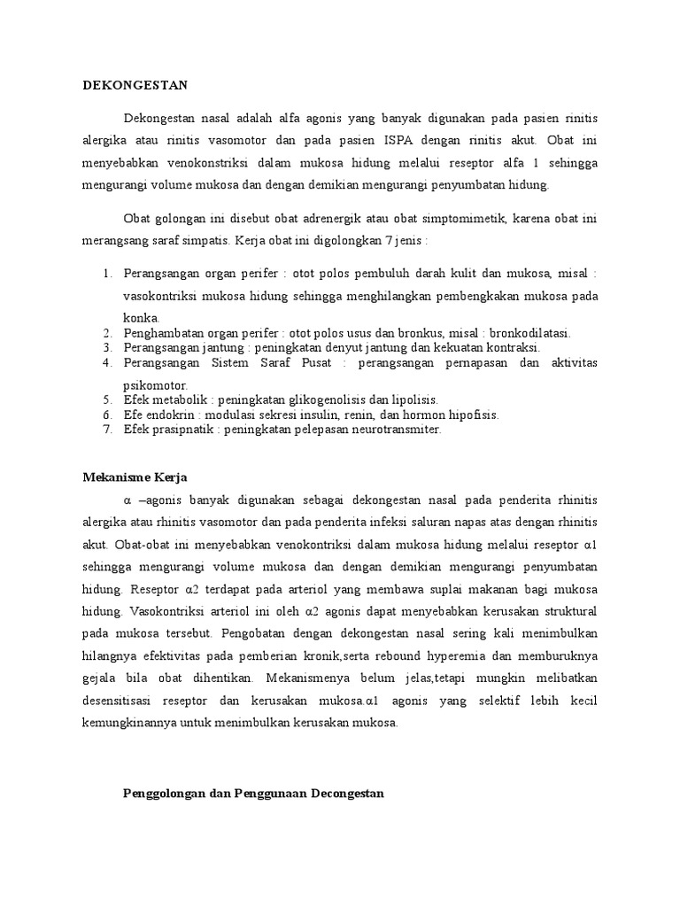 Penggolongan dan Penggunaan Decongestan