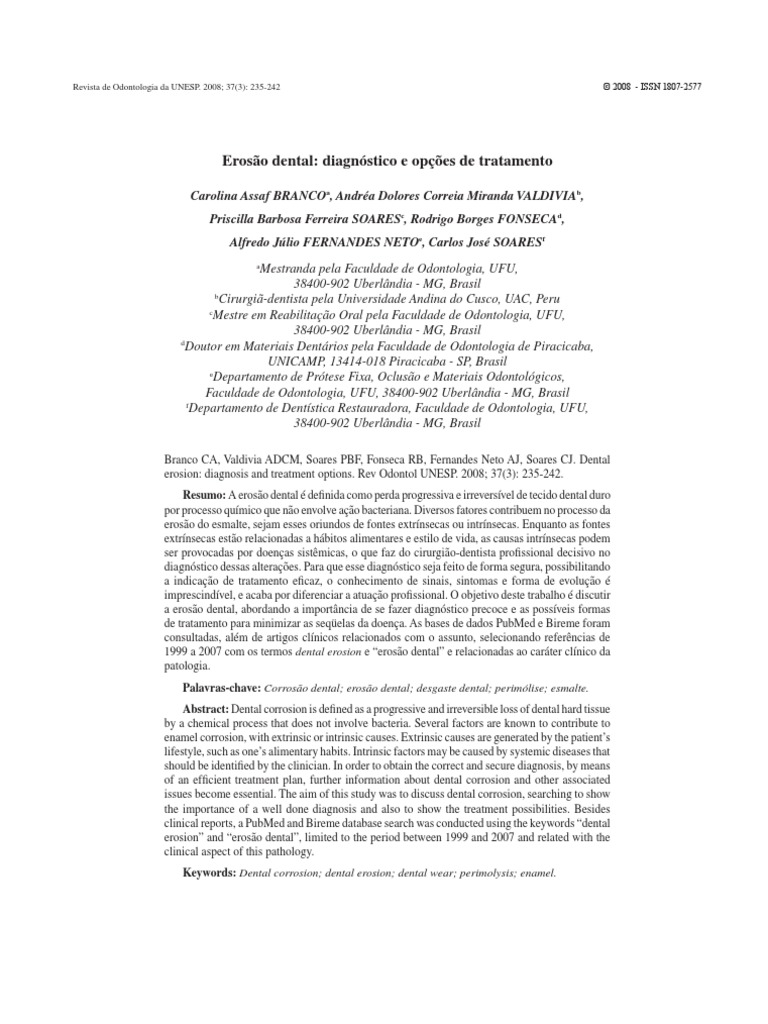 erosion: diagnosis and treatment options. Rev Odontol UNESP. 2008; 37(3): 235-242.