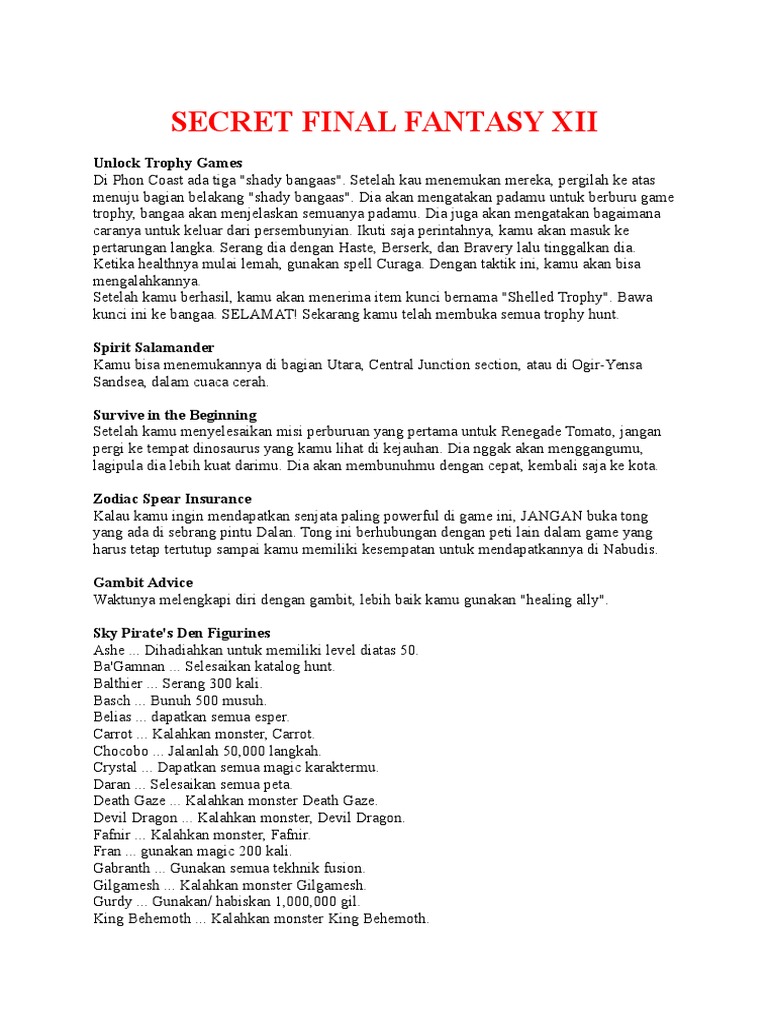 SECRET FINAL FANTASY XII