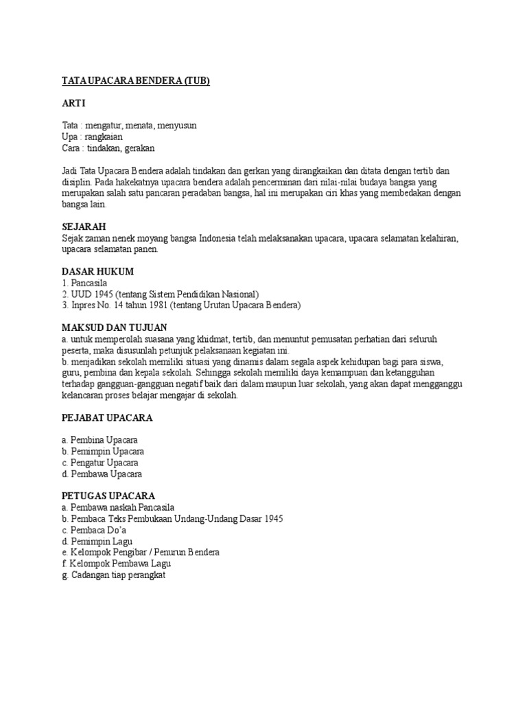 Tata Upacara Bendera atau Susunan Upacara Bendera di Sekolah sendiri sebenarnya sudah
