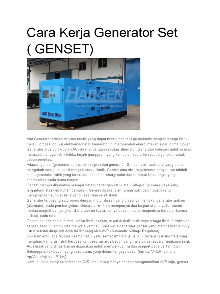Cara Kerja Generator Set