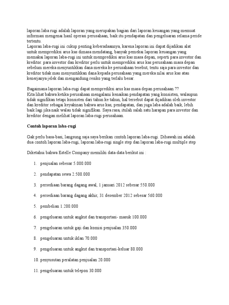Contoh laporan laba-rugi multiple step