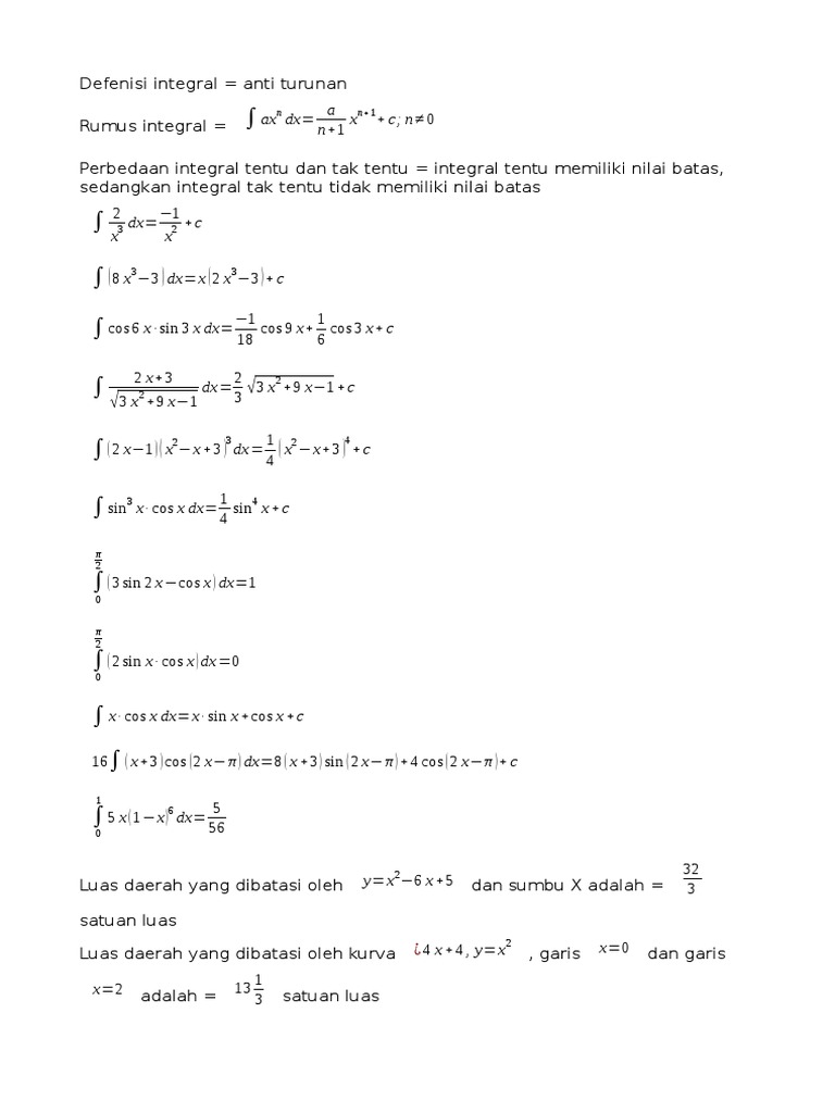 Perbedaan integral tentu dan tak tentu = integral tentu memiliki nilai batas,