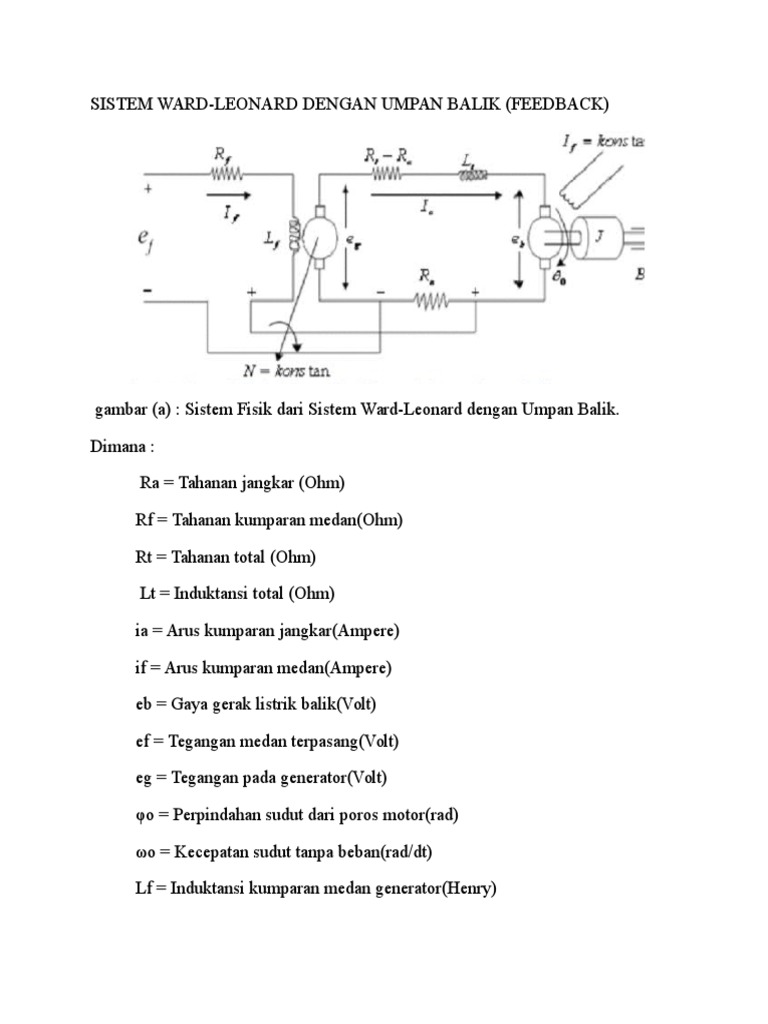 gambar (a) : Sistem Fisik dari Sistem Ward-Leonard dengan Umpan Balik.