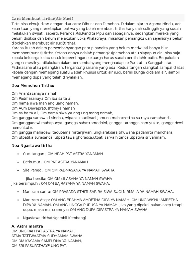 13. Doa ngayabang atau ngaturang banten; Om dewa amukti sukam bhawantu, namo namah swaha.