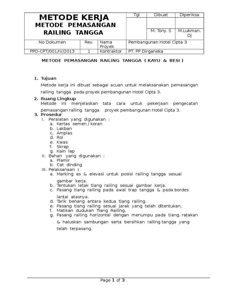 Metode kerja ini dibuat sebagai acuan untuk melaksanakan pemasangan