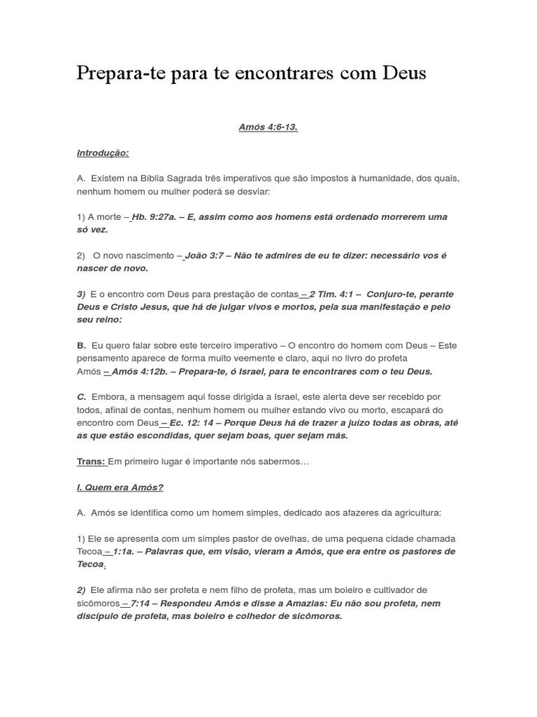 Ams Ams 4:12b. Prepara-te, Israel, para te encontrares com o teu Deus.