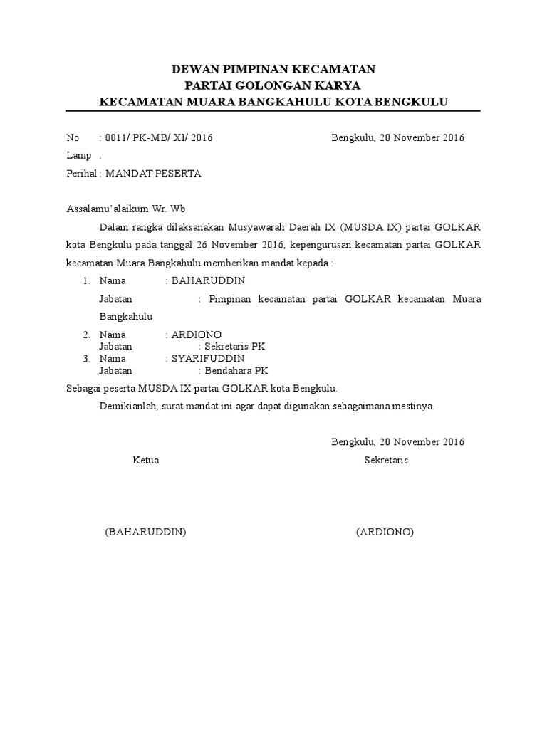 Demikianlah surat mandat ini, semoga dapat dipergunakan sebagaimana mestinya.