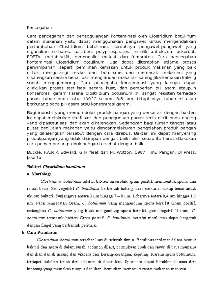 Cara pencegahan dan penaggulangan kontaminasi oleh Clostridium botulinum