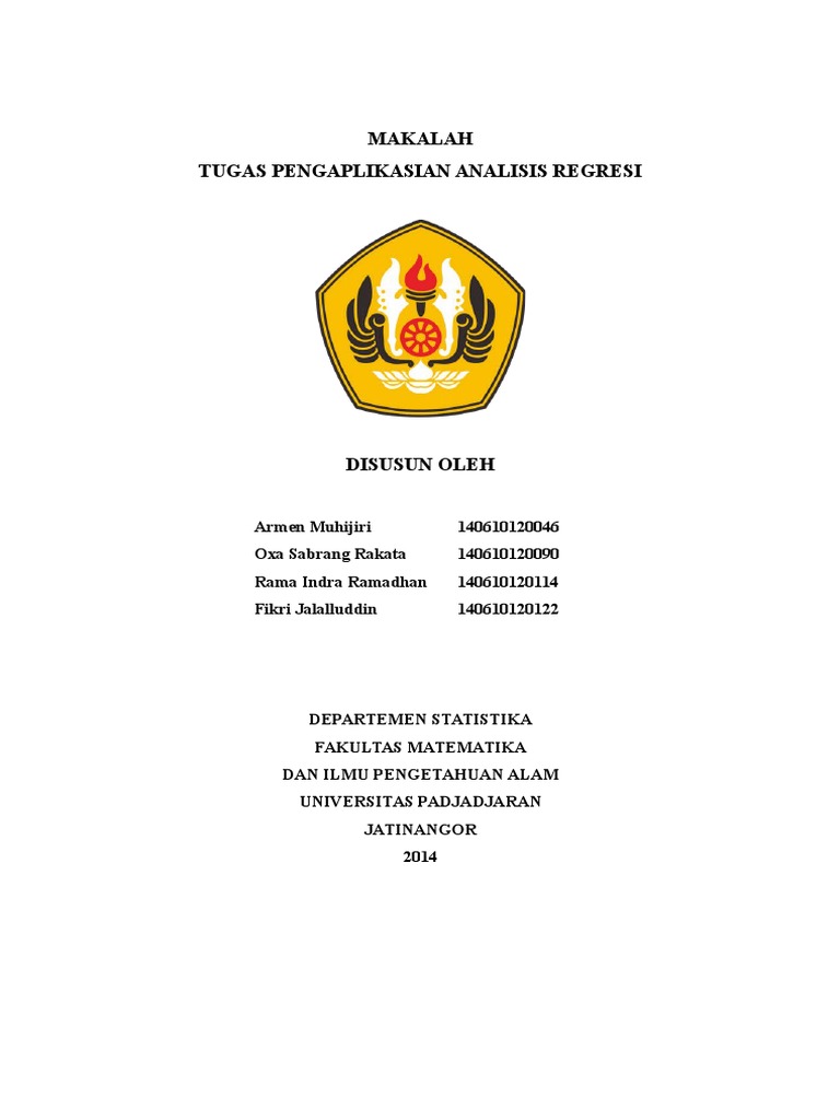 makalah yang berjudul Tugas Pengaplikasian Analisis Regresi.