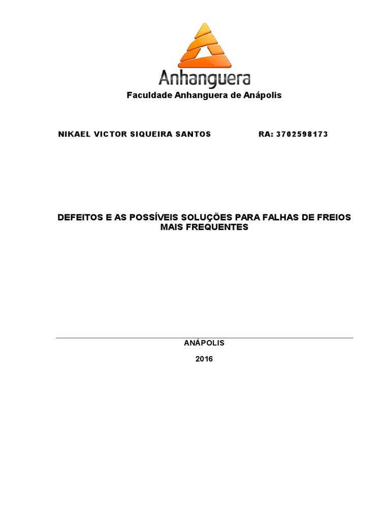 DEFEITOS E AS POSSVEIS SOLUES PARA FALHAS DE FREIOS
