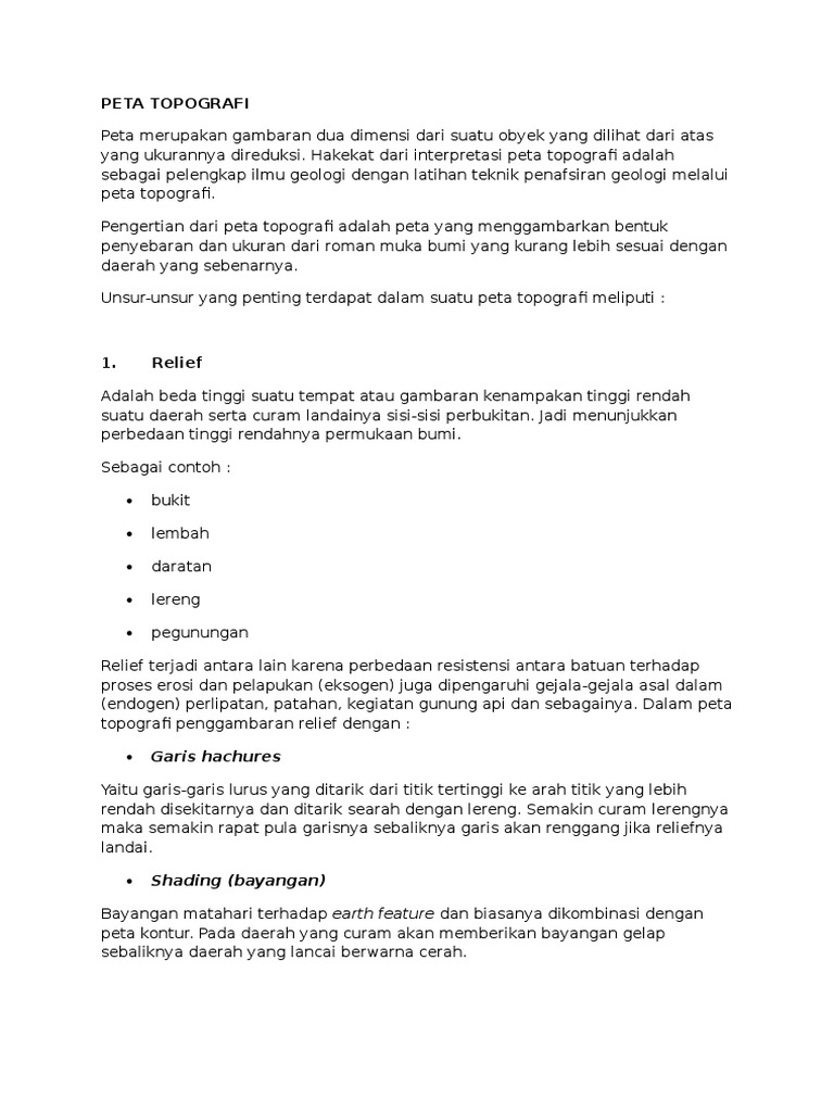 Pengertian dari peta topografi adalah peta yang menggambarkan bentuk