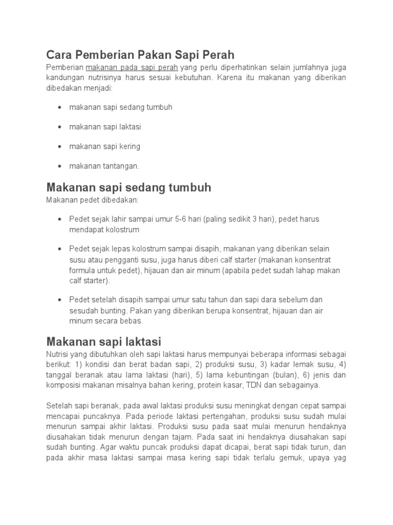 akan menyesuaikan makanan tersebut sebelum beranak. Sapi yang beranak dalam