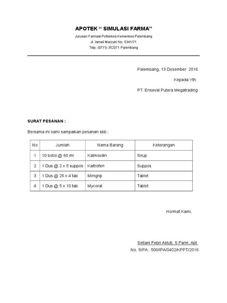 SURAT PESANAN OBAT MENGANDUNG PREKURSOR FARMASI