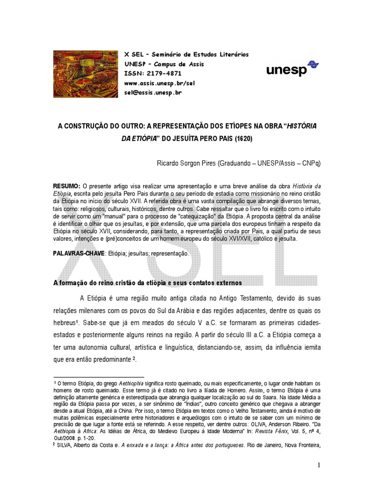 potencialidades em termos de pesquisa contidas na obra Histria da Etipia de Pero Pais, a qual