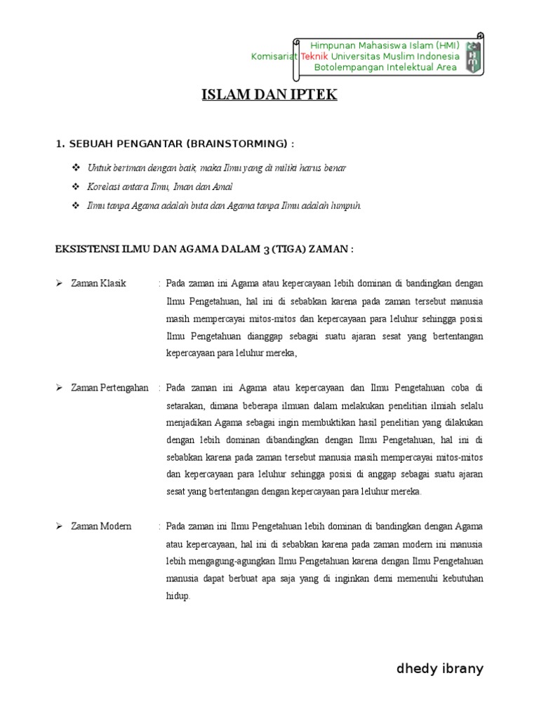 EKSISTENSI ILMU DAN AGAMA DALAM 3 (TIGA) ZAMAN :
