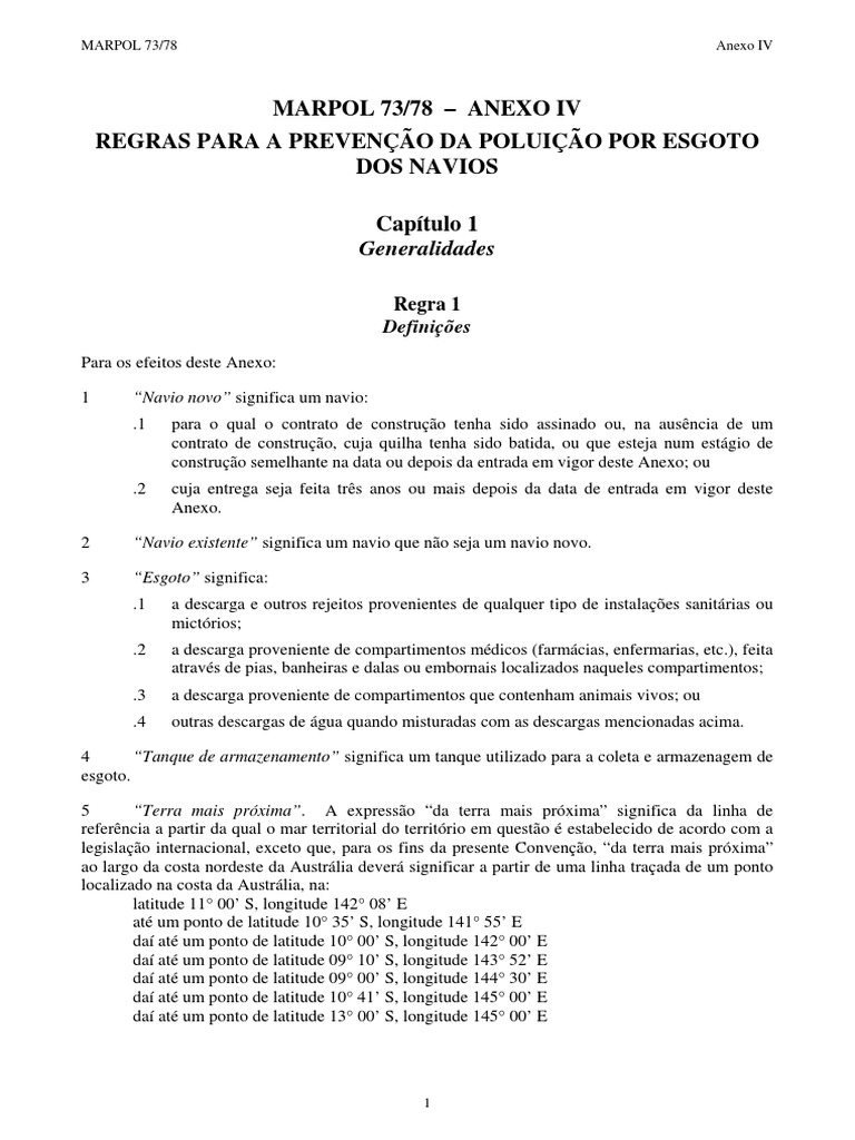Vide recomendao sobre normas para a vazo de descarga do esgoto no tratado pelos navios adotada pelo Comit
