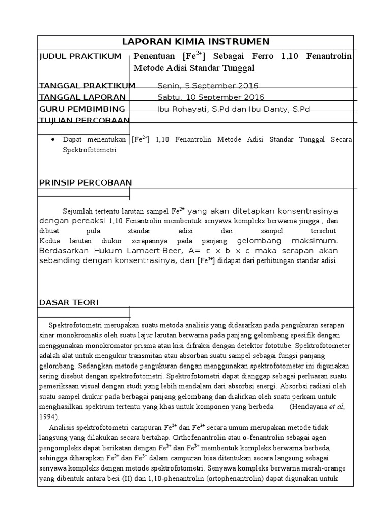1. Standar Fe2+ ditambahkan untuk menaikan konsentrasi pada sampel