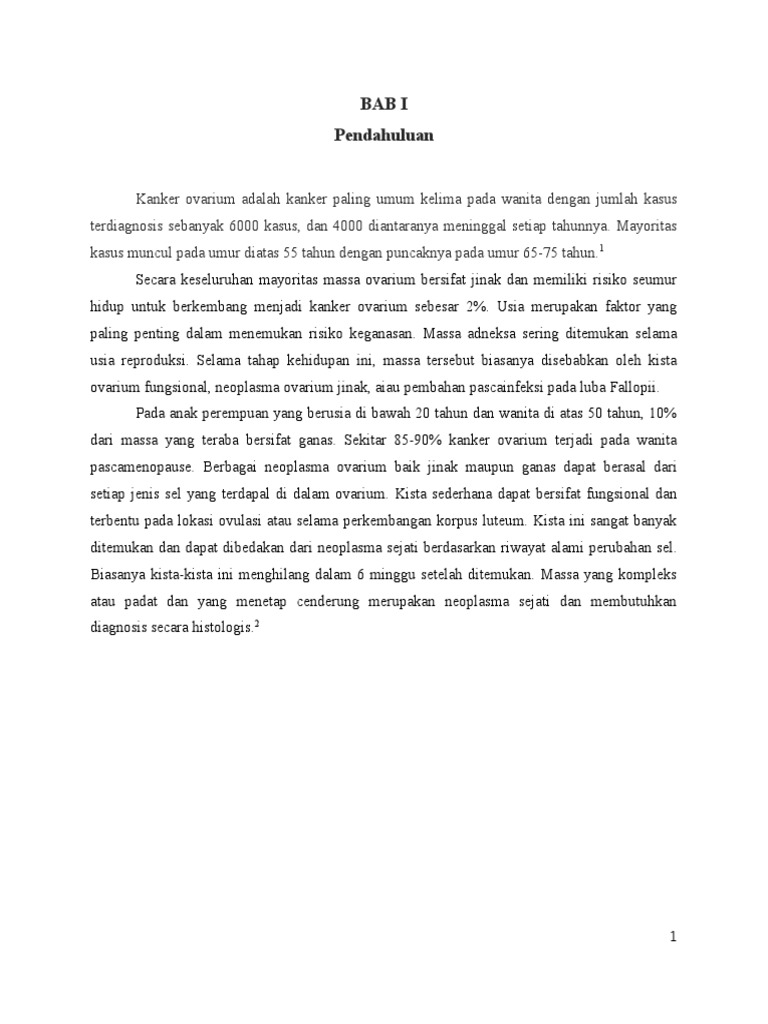 Kanker ovarium merupakan tumor dengan histiogenesis yang beraneka ragam, dapat berasal dari