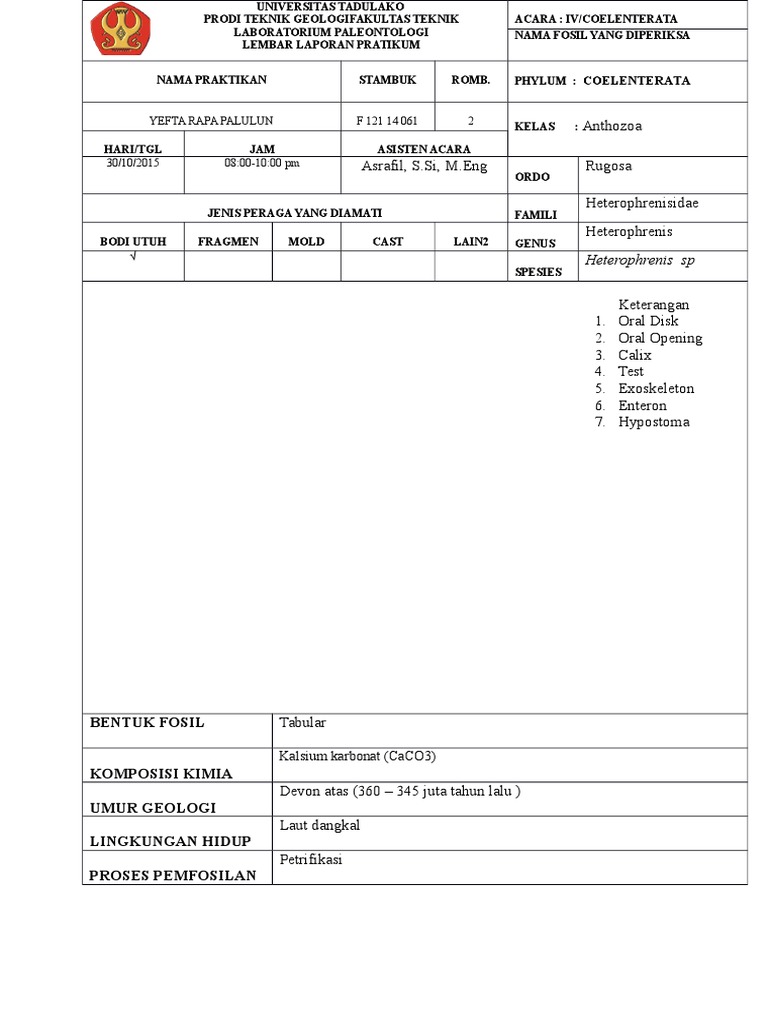 NAMA FOSIL YANG DIPERIKSA