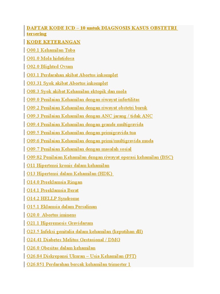DAFTAR KODE ICD 10 untuk DIAGNOSIS KASUS OBSTETRI