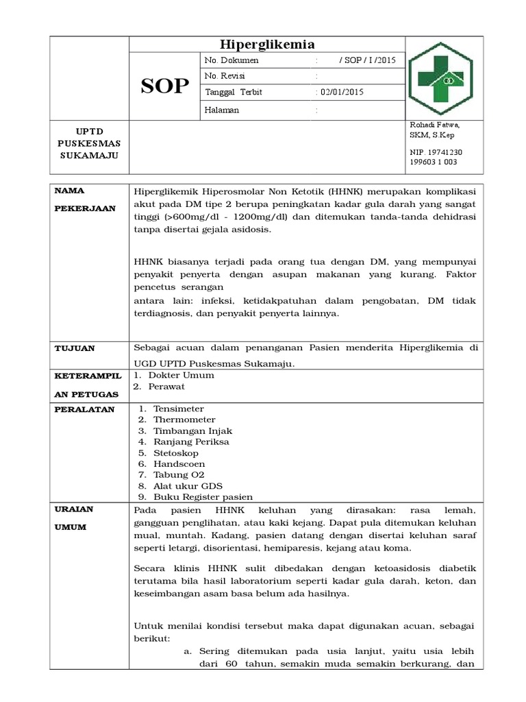 Sebagai acuan dalam penanganan Pasien menderita Hiperglikemia di
