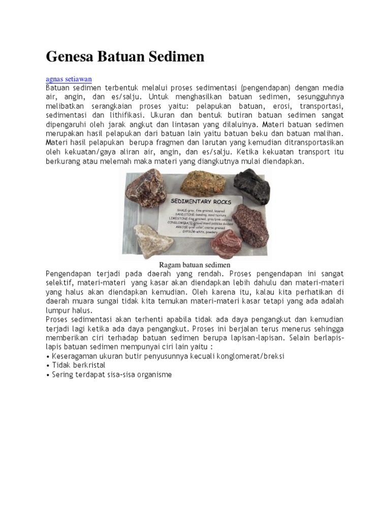 Menurut genesa atau proses pembentukannya, batuan sedimen terbagi ke dalam 3