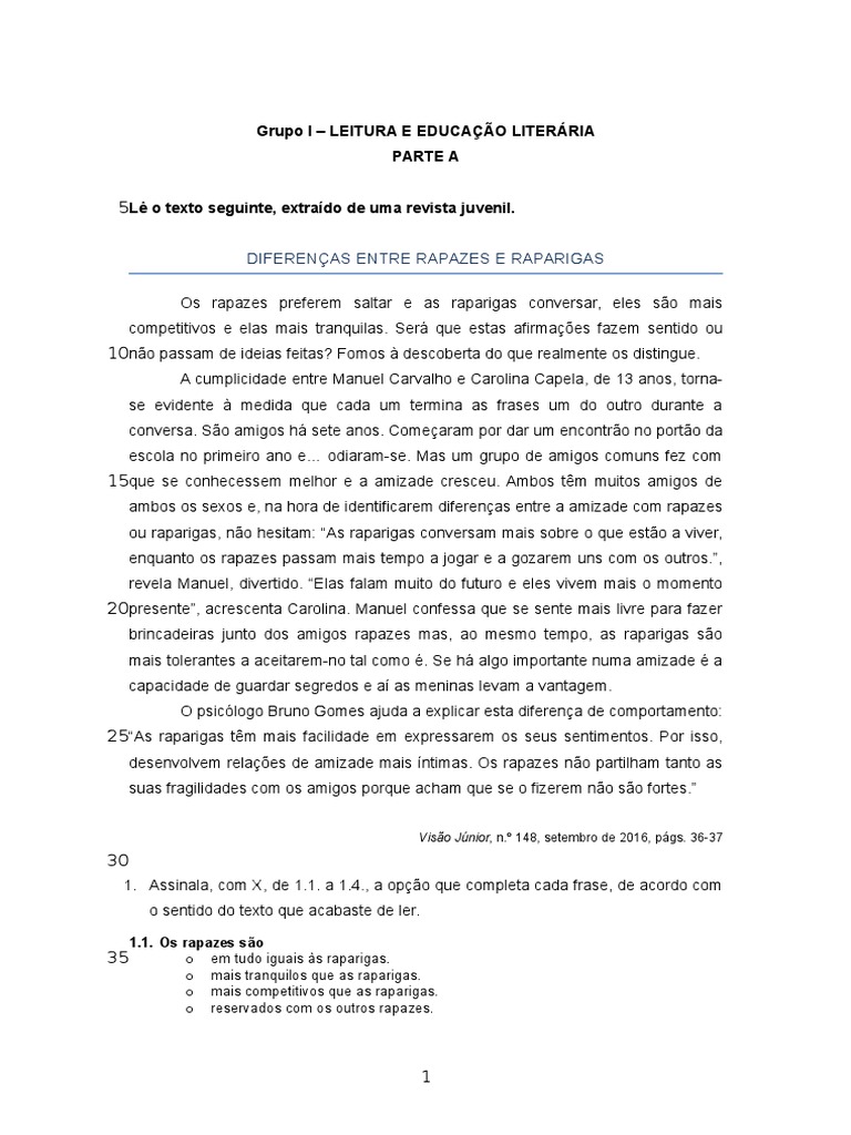 1. Assinala, com X, de 1.1. a 1.4., a opo que completa cada frase, de acordo com