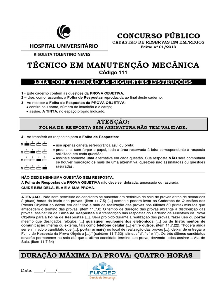 NÃO DEIXE NENHUMA QUESTÃO SEM RESPOSTA. A Folha de Respostas da PROVA OBJETIVA não deve ser dobrada, amassada ou rasurada. CUIDE BEM DELA. ELA É A SUA PROVA.