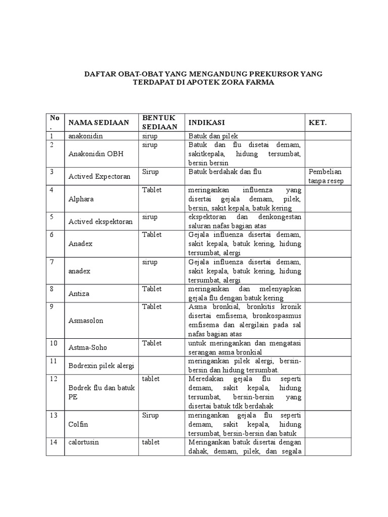 DAFTAR OBAT-OBAT YANG MENGANDUNG PREKURSOR YANG