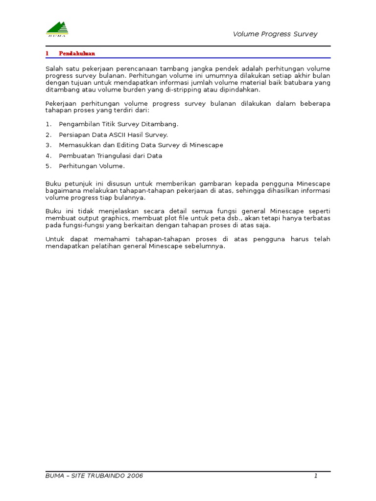 progress survey bulanan. Perhitungan volume ini umumnya dilakukan setiap akhir bulan