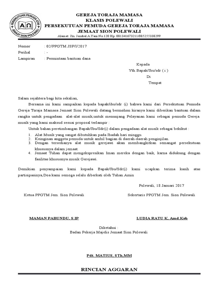 Gereja Toraja Mamasa Jemaat Sion Polewali datang bermohon kiranya kami diberikan bantuan dalam