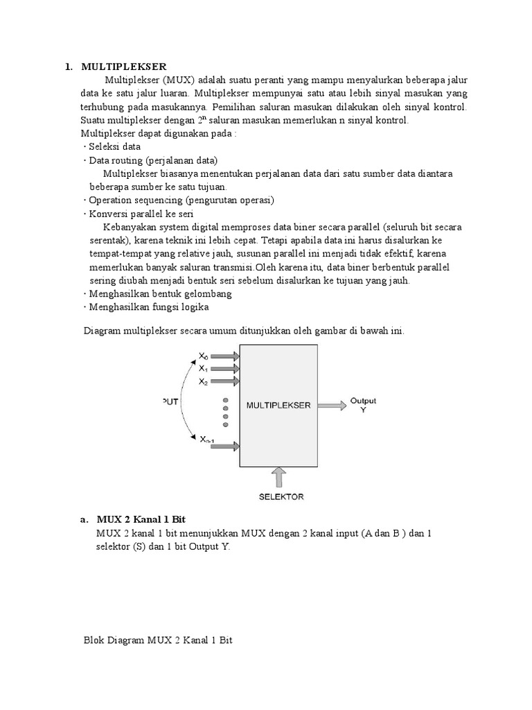 Multiplekser (MUX) adalah suatu peranti yang mampu menyalurkan beberapa jalur
