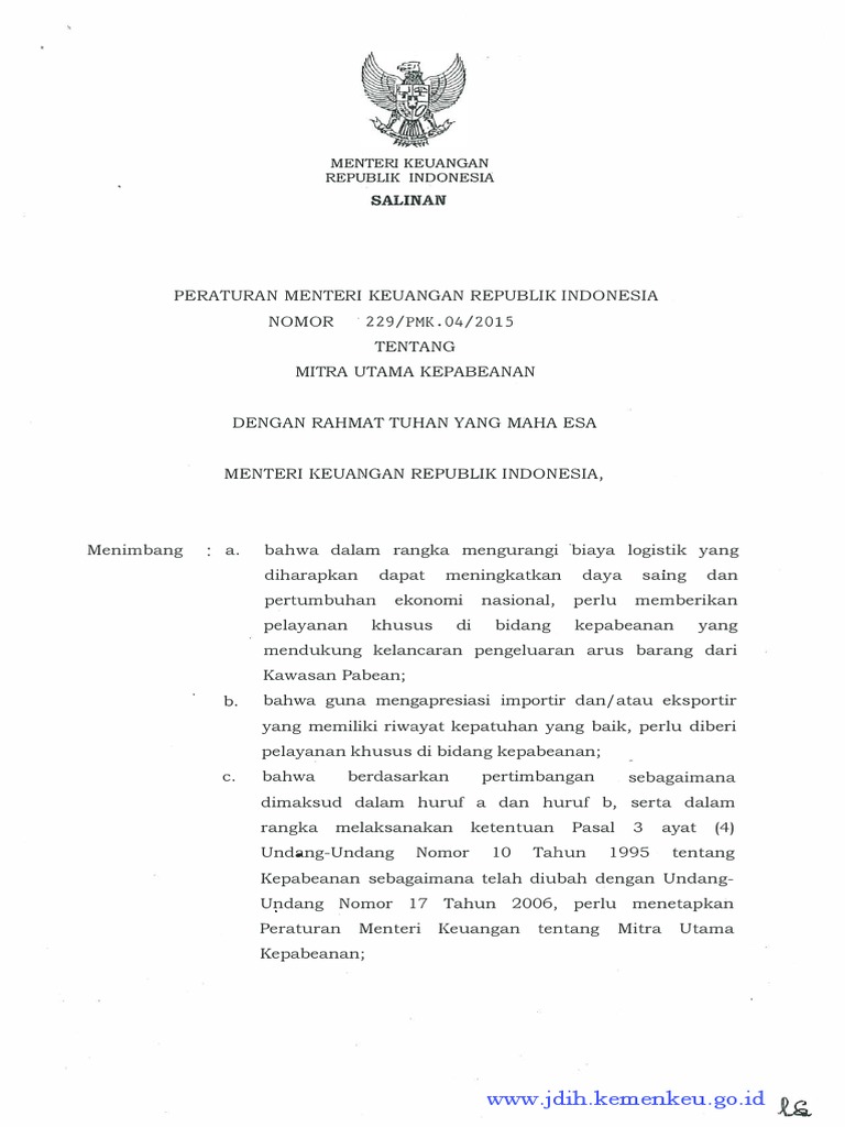 NOMOR 229/PMK.04/2015