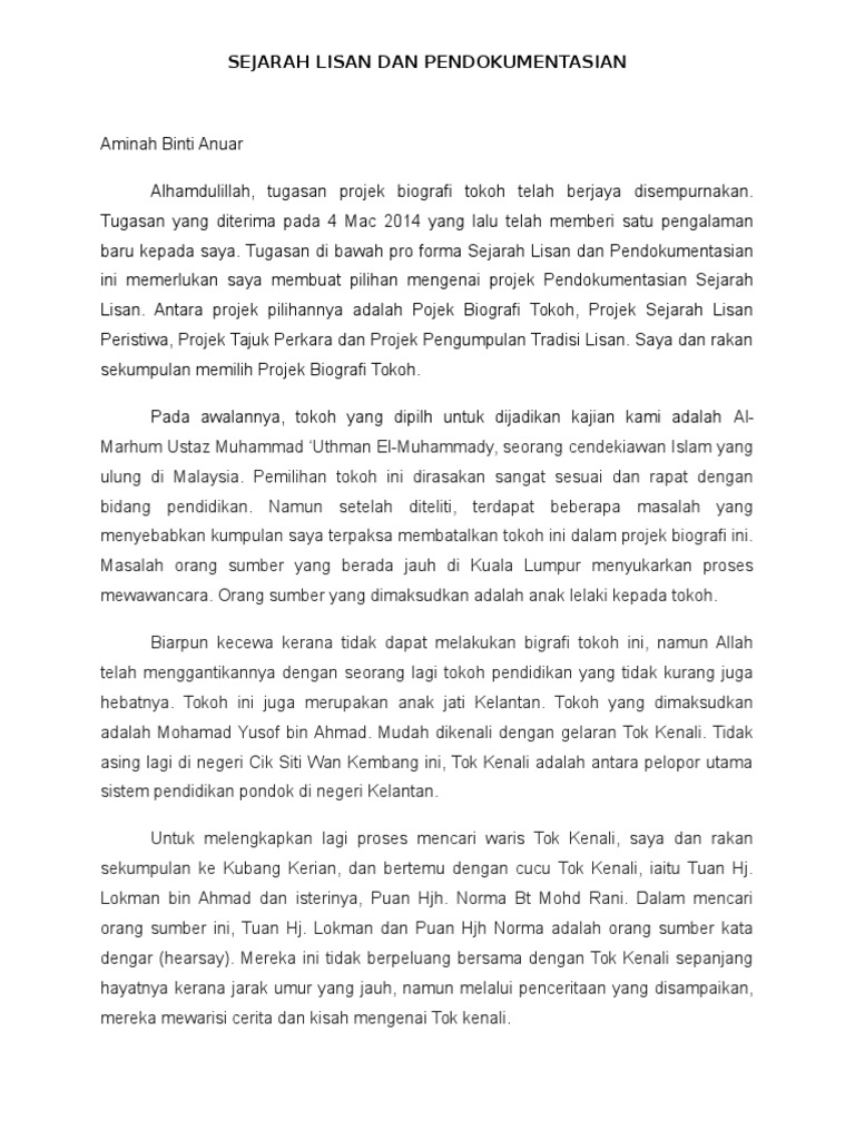 baru kepada saya. Tugasan di bawah pro forma Sejarah Lisan dan Pendokumentasian