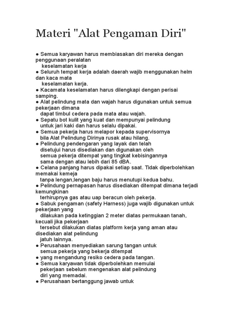 yang benar untuk alat pelindung diri kepada