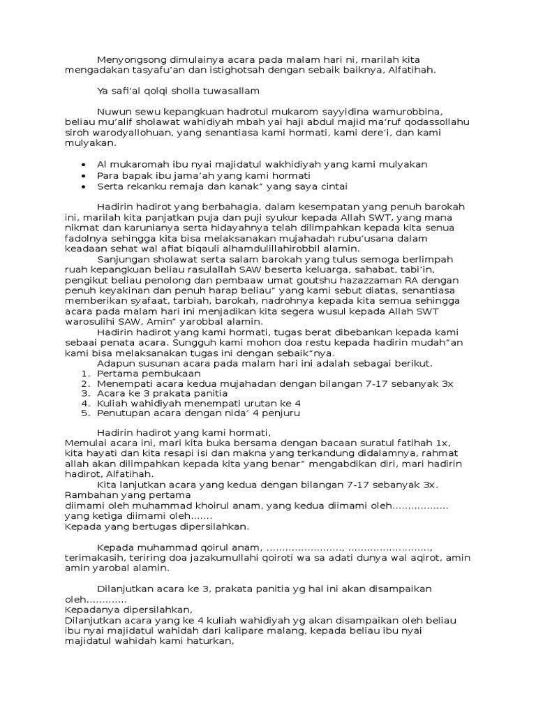 sebaai penata acara. Sungguh kami mohon doa restu kepada hadirin mudahan