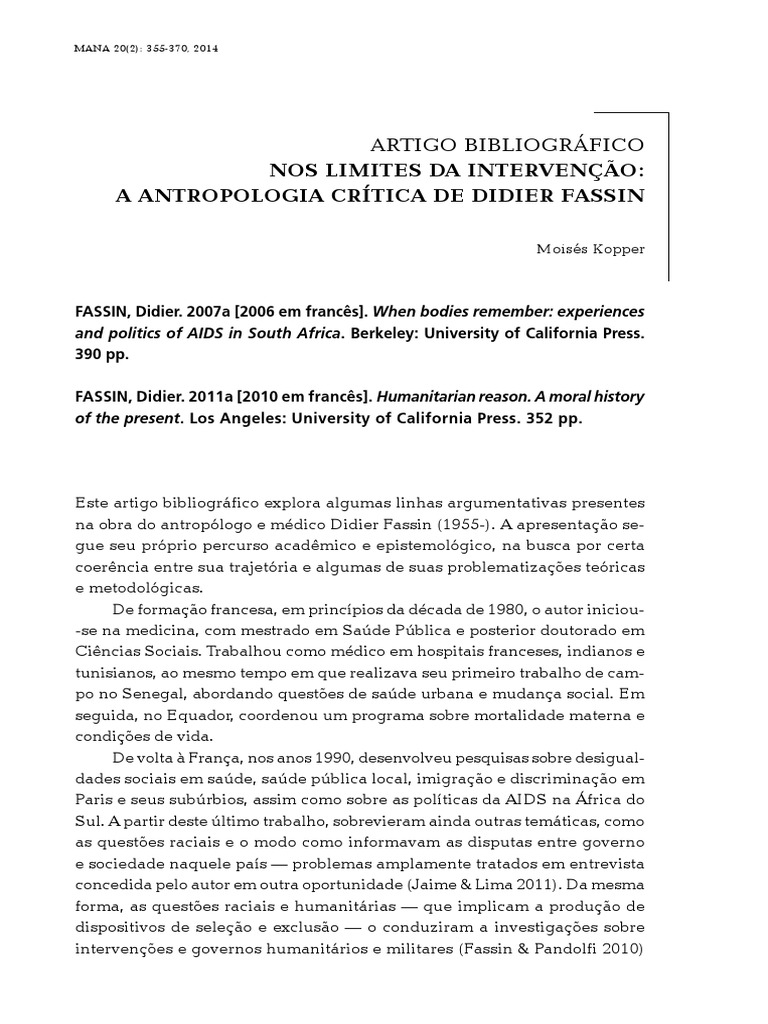 na obra do antroplogo e mdico Didier Fassin (1955-). A apresentao se-