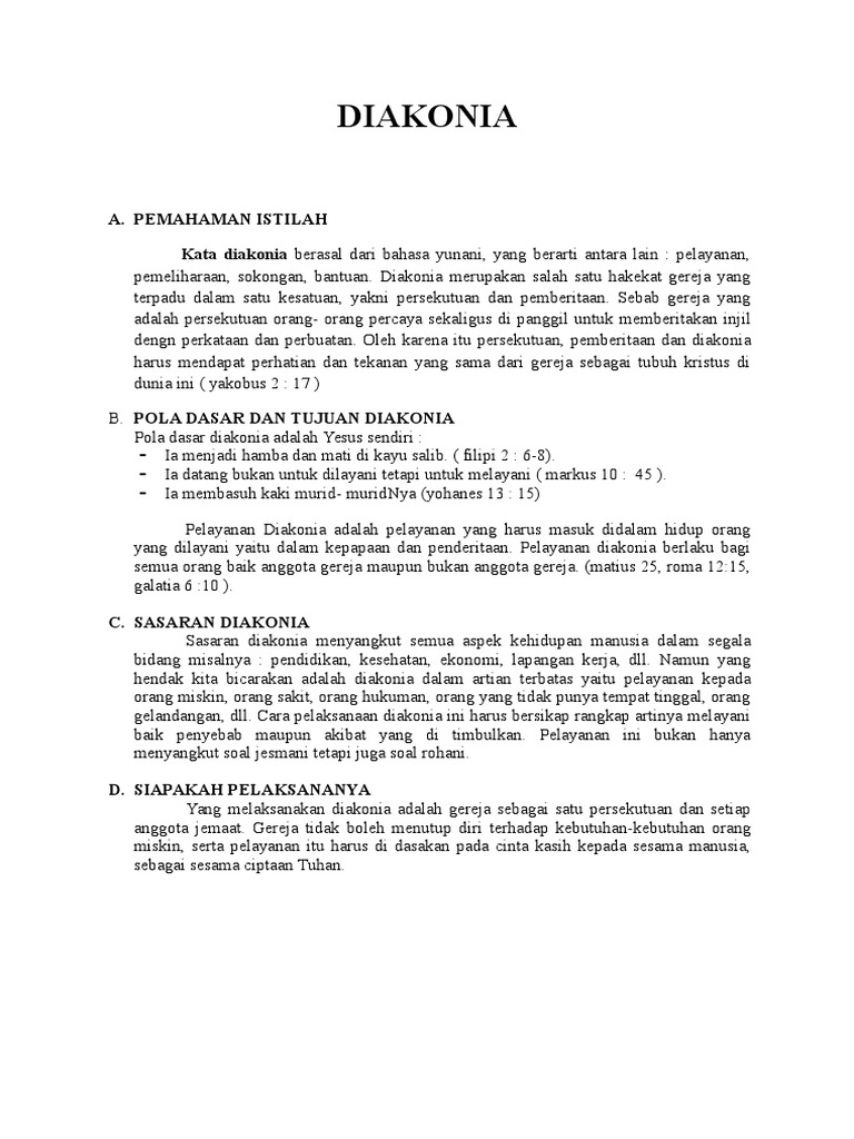 hendak kita bicarakan adalah diakonia dalam artian terbatas yaitu pelayanan kepada