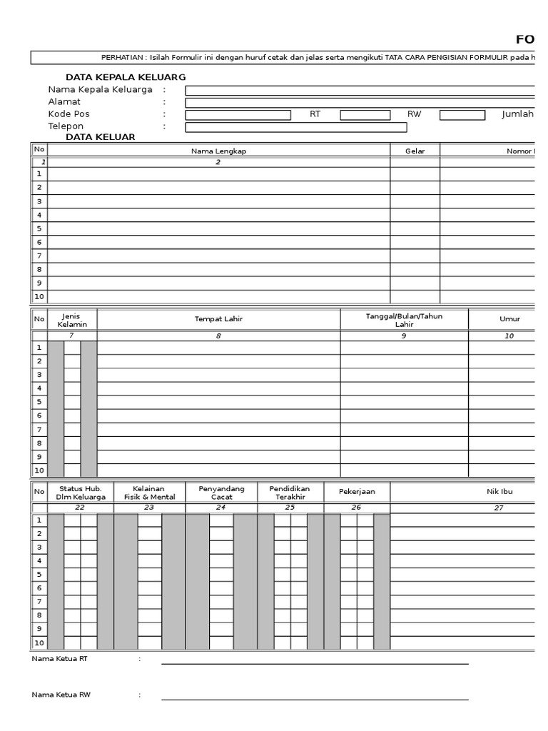 FORMULIR ISIAN BIODATA PENDUDUK UNTUK WNI (PER KELUARGA)