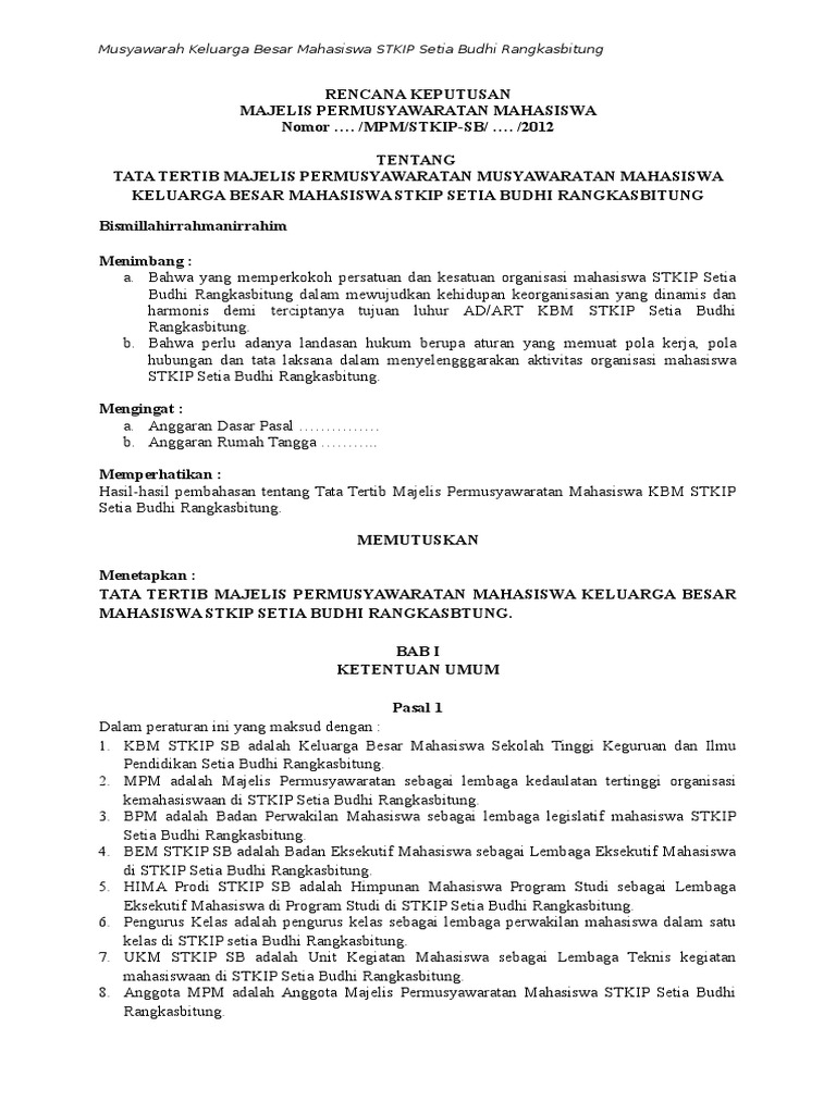 3. Mekanisme kerja diatur dalam tata tertib MPM STKIP SB Rangkasbitung yang ditetapkan