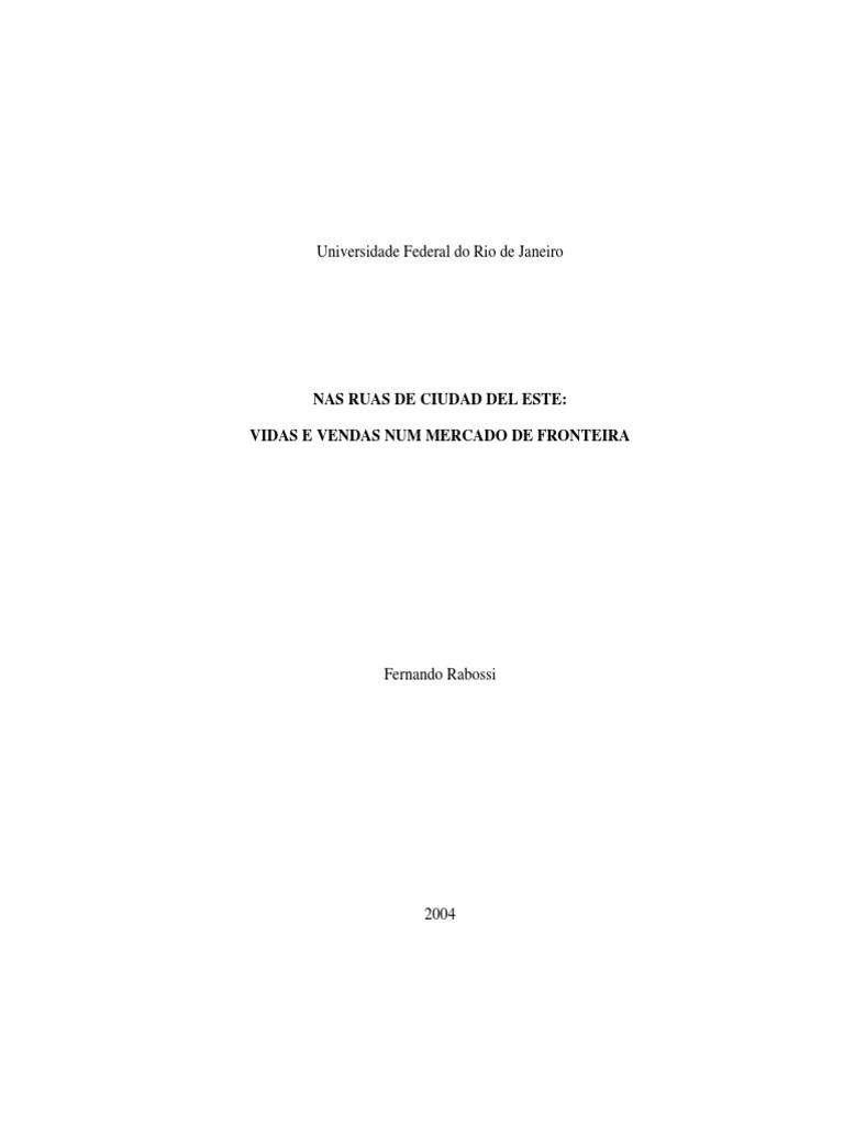 Rabossi, Fernando Nas ruas de Ciudad del Este: Vidas e vendas num mercado de fronteira / Fernando Rabossi, 2004. xv, 318f.: il.