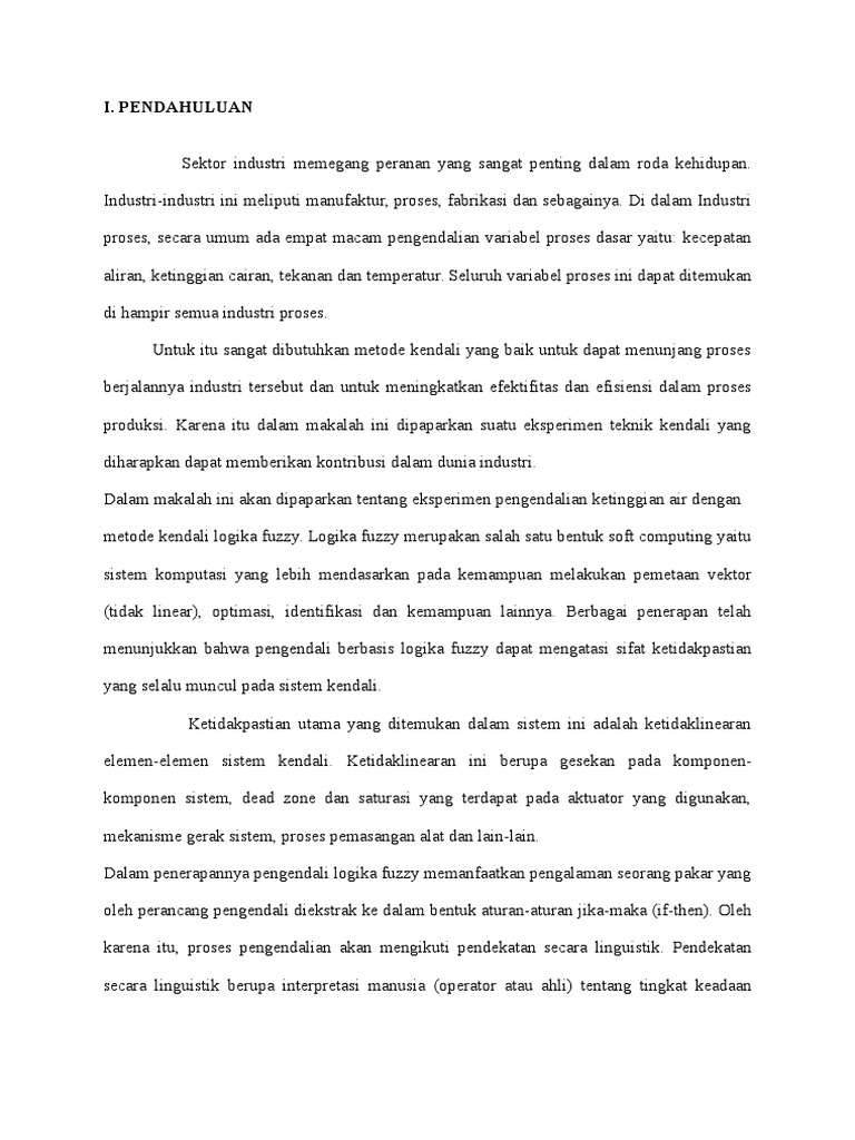Dalam makalah ini akan dipaparkan tentang eksperimen pengendalian ketinggian air dengan
