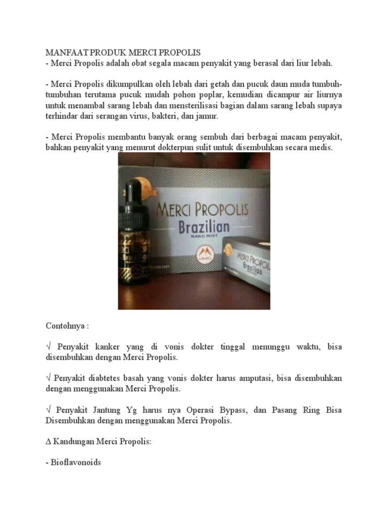 kami yaitu Merci Propolis Brazilian. Produk andalan kami ini langsung di