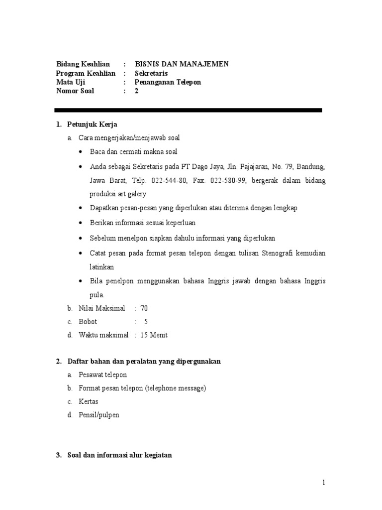 berdering dan Anda sebagai Sekretaris harus menangani telepon masuk dan