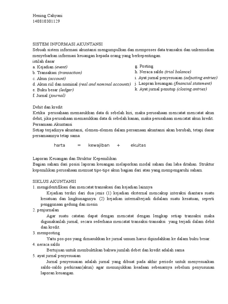 1. mengidentifikasi dan mencatat transakasi dan kejadian lainnya