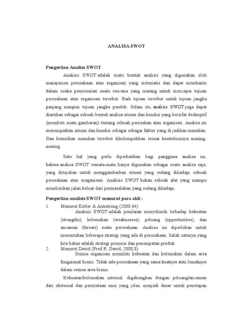 bahwa analisa SWOT semata-mata hanya digunakan sebagai suatu analisa saja,