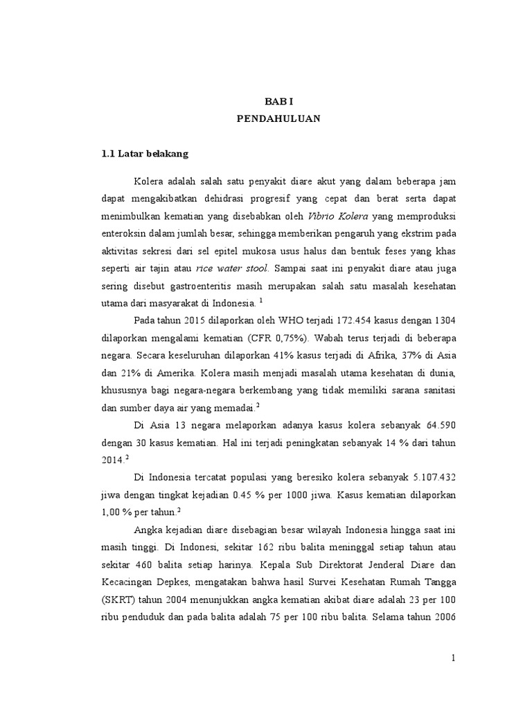 1. Kolera adalah suatu penyakit akut yang menyerang saluran pencernaan yang